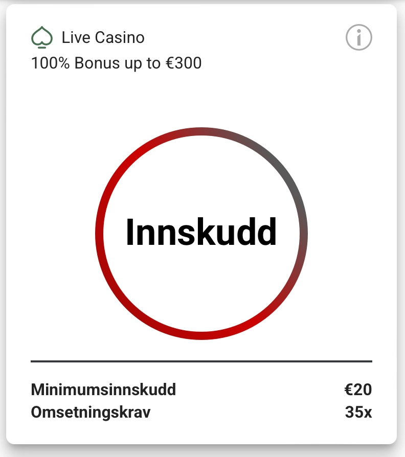 - Hvis du vil spille live casino får du 100% bonus opp til 3000 NOK.