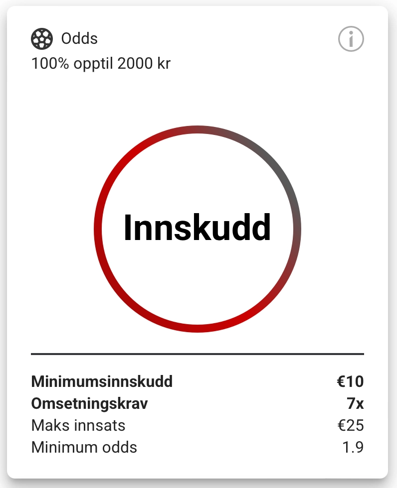 - Hvis du vil spille på odds får du 100% opp til 2000 NOK.