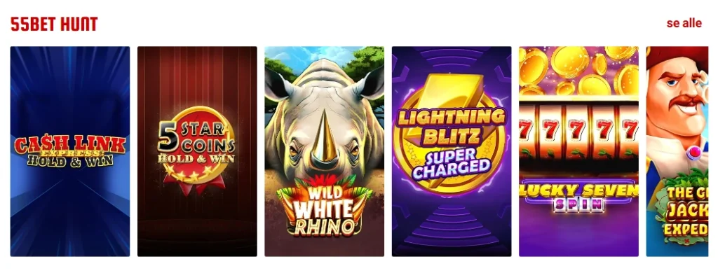 55BET samarbeider med rundt 30 forskjellige leverandører, fra kjente navn som NetEnt og Pragmatic Play til studioer som 4thePlayer og Spinza. Selv om biblioteket ikke er det største på markedet, finner du likevel mange populære titler her—spesielt i kategoriene Bonus Buy og Megaways.