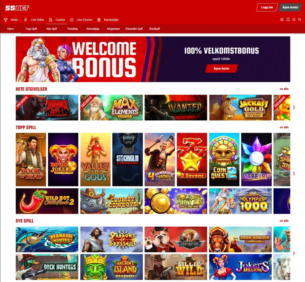Endelig lanseres det nye 55Bet av Novatech Solutions N.V. Dette har vært en av våre mest etterlengtede spillsider som ble lansert i slutten av desember 2024, noe som nesten gjør det til det første nye casinoet i år 2025!?